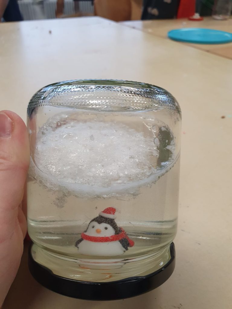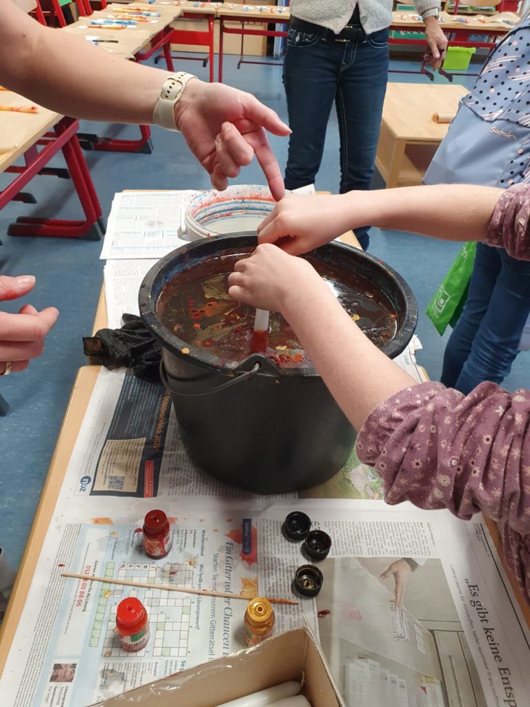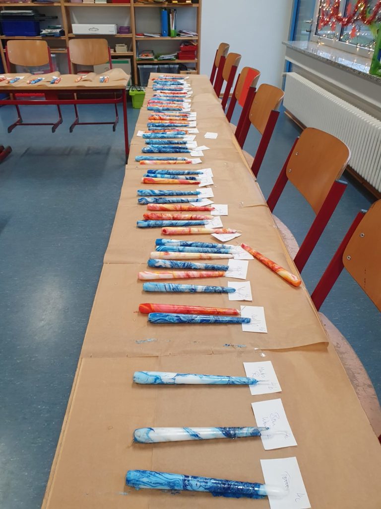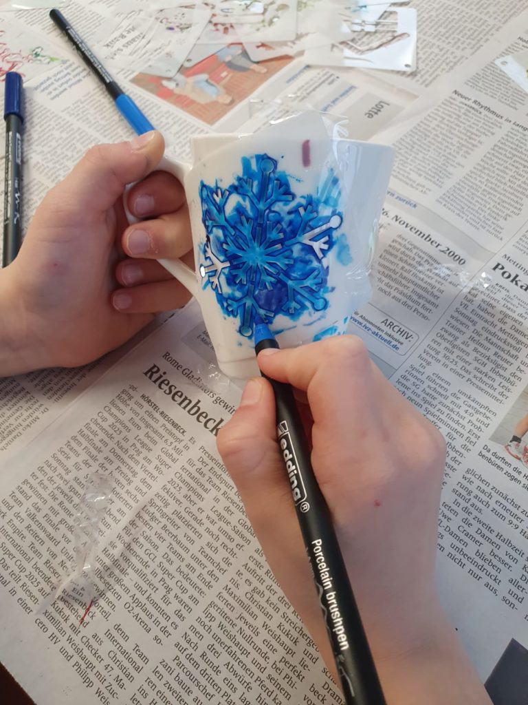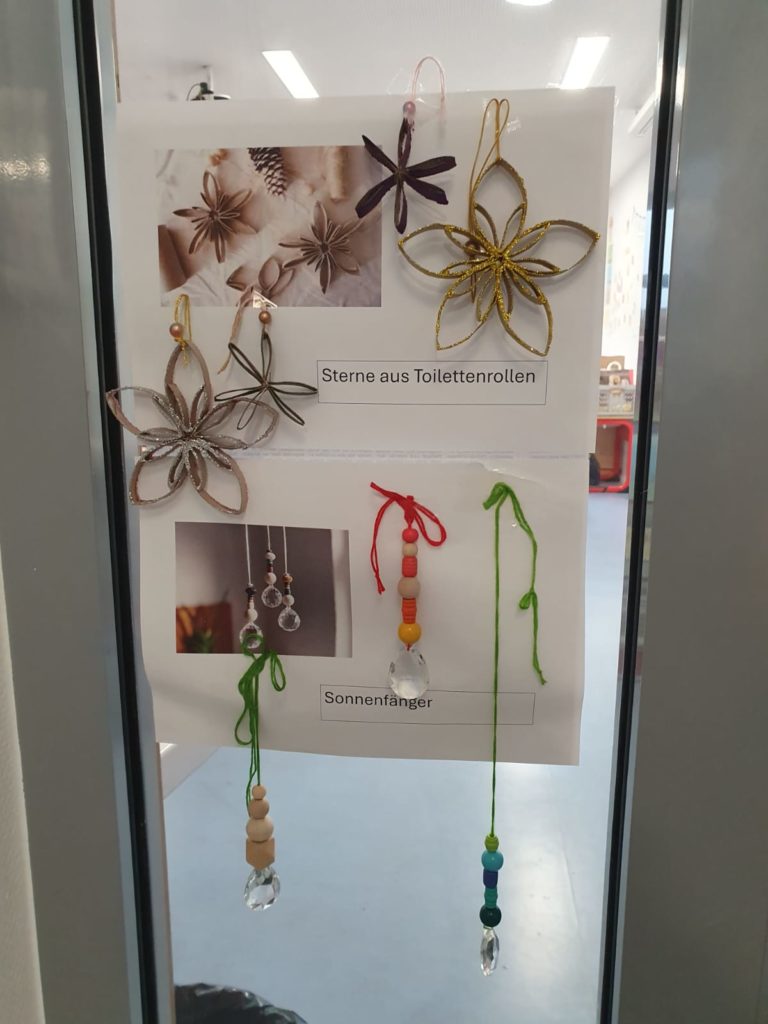 Es wurden Kerzen marmoriert, Christbaumschmuck gestaltet und Marmeladengläser mit Serviettentechnik verziert. Auch zahlreiche winterliche Bastelideen sorgten für Freude und Abwechslung.